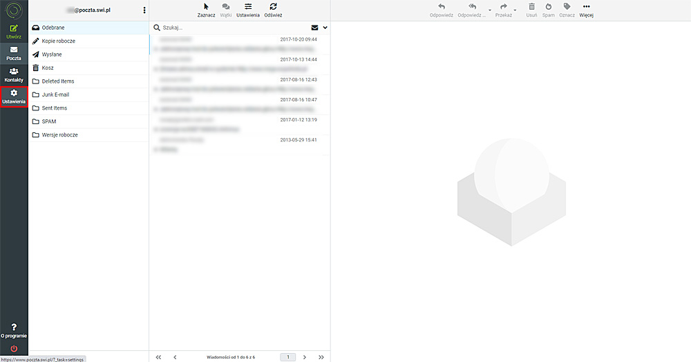 Aby zmienić hasło, należy zalogować się do swojego konta a następnie kliknąć przycisk "ustawienia" w lewej stronie menu (jak na obrazku poniżej).