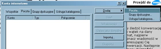 Pojawi się okno z czterema zakładkami. Nalezy się przełączyć na zakładkę drugą 'Poczta'. Następnie