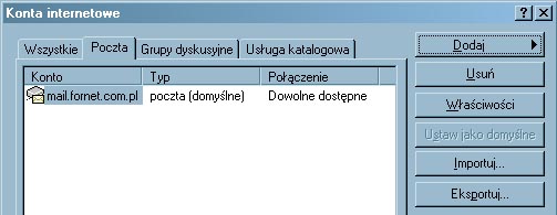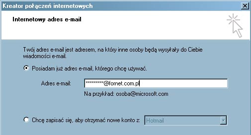 - nazwa konta poczty elektronicznej : ********@fornet.com.pl,