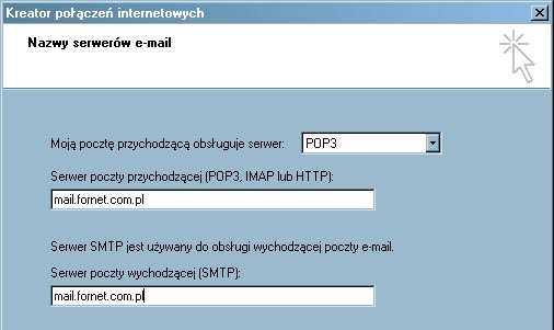- serwer poczty przychodzącej (POP3) :mail.fornet.com.pl,